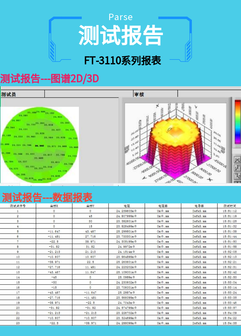 四探針電阻率/方阻測試儀大體分類為,全自動(dòng)類型和半自動(dòng)類型;全自動(dòng)類型成本高,精度和穩(wěn)定性要求也高,如全自動(dòng)四探針測試儀一般采用MAP地圖圖譜方式來描述整體樣品均勻性及方阻和電阻率數(shù)據(jù),也就是應(yīng)用2D和3D 圖.
