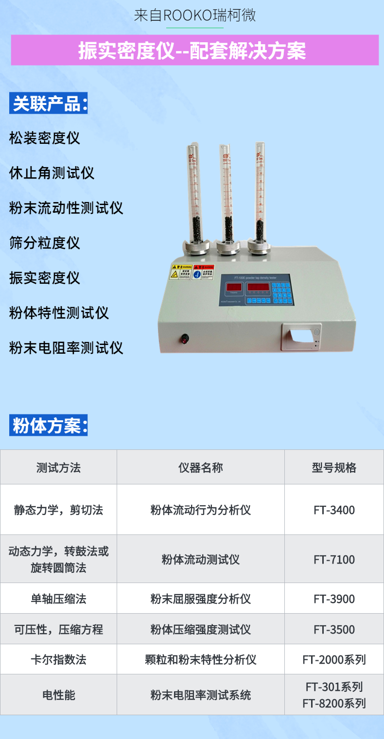 ROOKO瑞柯微專注于粉末/粉體/顆粒流動性測試儀,振實/松裝/堆積密度測定儀,休止角測定儀,安息角測定儀,粉末電阻率測試儀,粉體綜合特性測試儀,四探針/方阻/電阻率測試儀,材料體積/表面電阻率測試儀廠家提供技術資訊和解答
