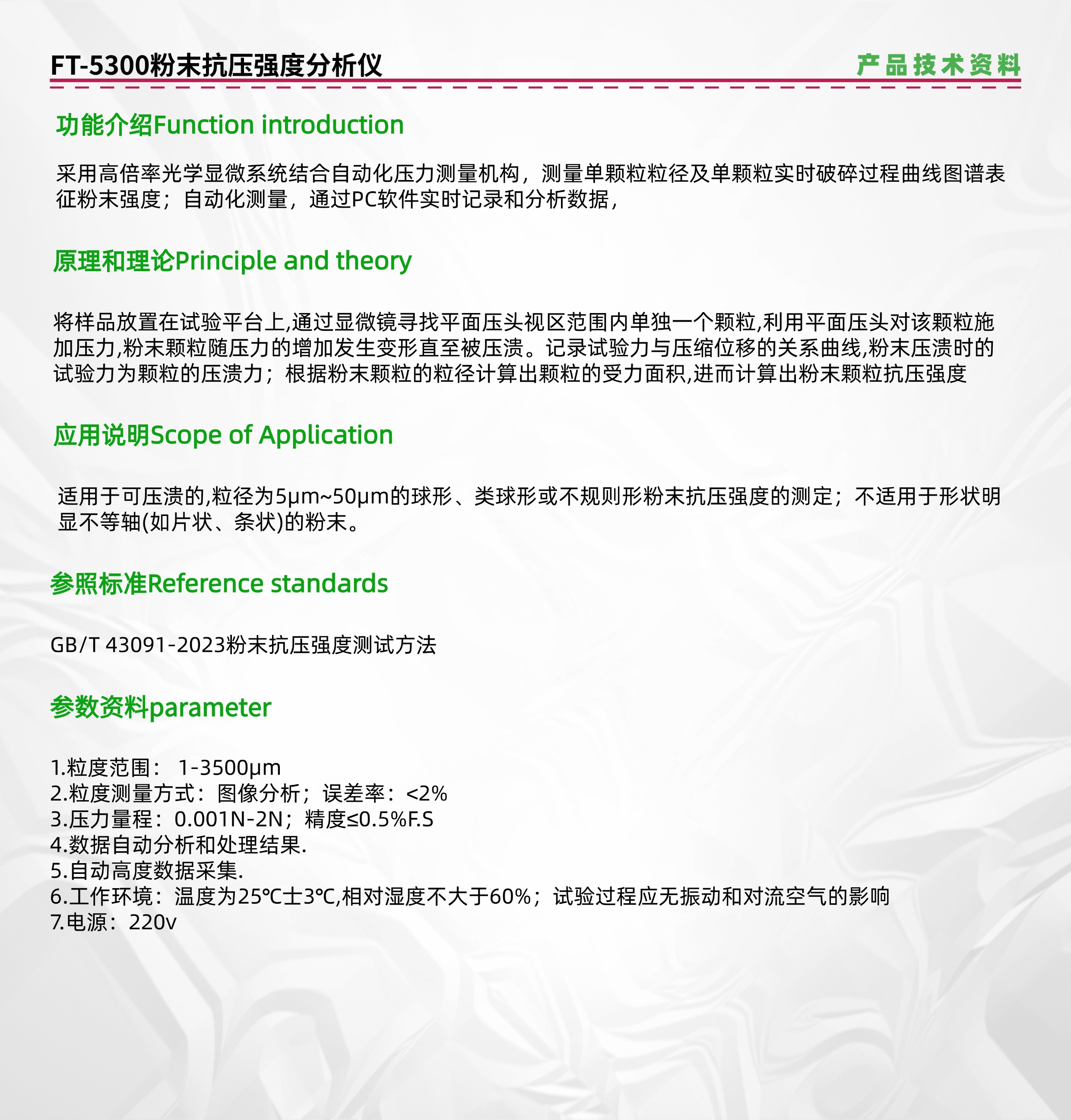 粉體單顆粒強度反映了單個粉體顆粒抵抗外力破壞的能力,其測量方法多樣,在多個領(lǐng)域都有重要應(yīng)用,以下是具體介紹: