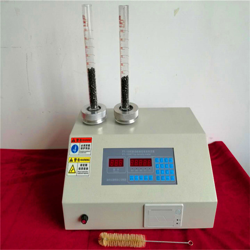 按上述過程測得總體積(V0)。將量筒固定在支架上。使用10 ,500和1250次拍打在同一粉末樣品,并讀取相應(yīng)體積V10 , V500 和 V1250至最近刻度值。當(dāng)V500和V1250相差小于或等于2ml時, V1250是振實體積。當(dāng)V500和V1250相差超過2ml,重復(fù)增量,如1250次拍打,直至測量值間差異小于或等于2毫升。校驗時沖頭上粉末越少越好。計算出振實密度(g/ml)通過公式m/ VF ,其中VF是最終振實體積。拍填密度一般要求進行復(fù)測。指定落差結(jié)果。如果不能用100g試樣,可適當(dāng)減少試樣量,也可以換成重量為130±16g的100 ml 玻璃量筒(讀出量程至1ml )并固定在240±12g的支架上。變更的測試條件與結(jié)果一起詳細說明。