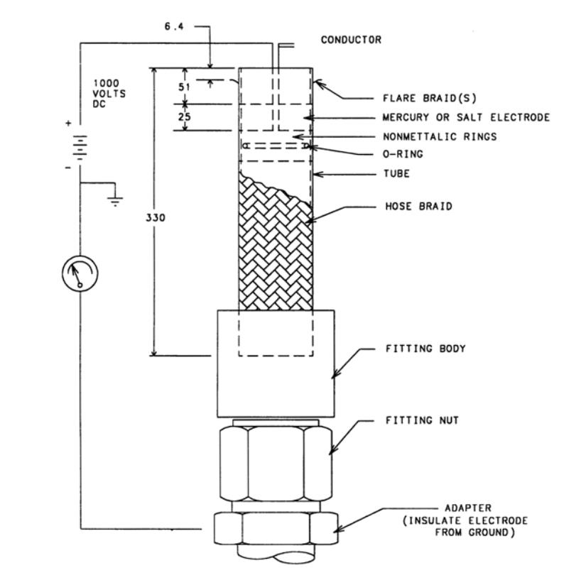 電導(dǎo)率測(cè)試(僅聚四氟乙烯軟管)以及樣品應(yīng)該是330毫米±10毫米測(cè)試;電壓DC:1000 V